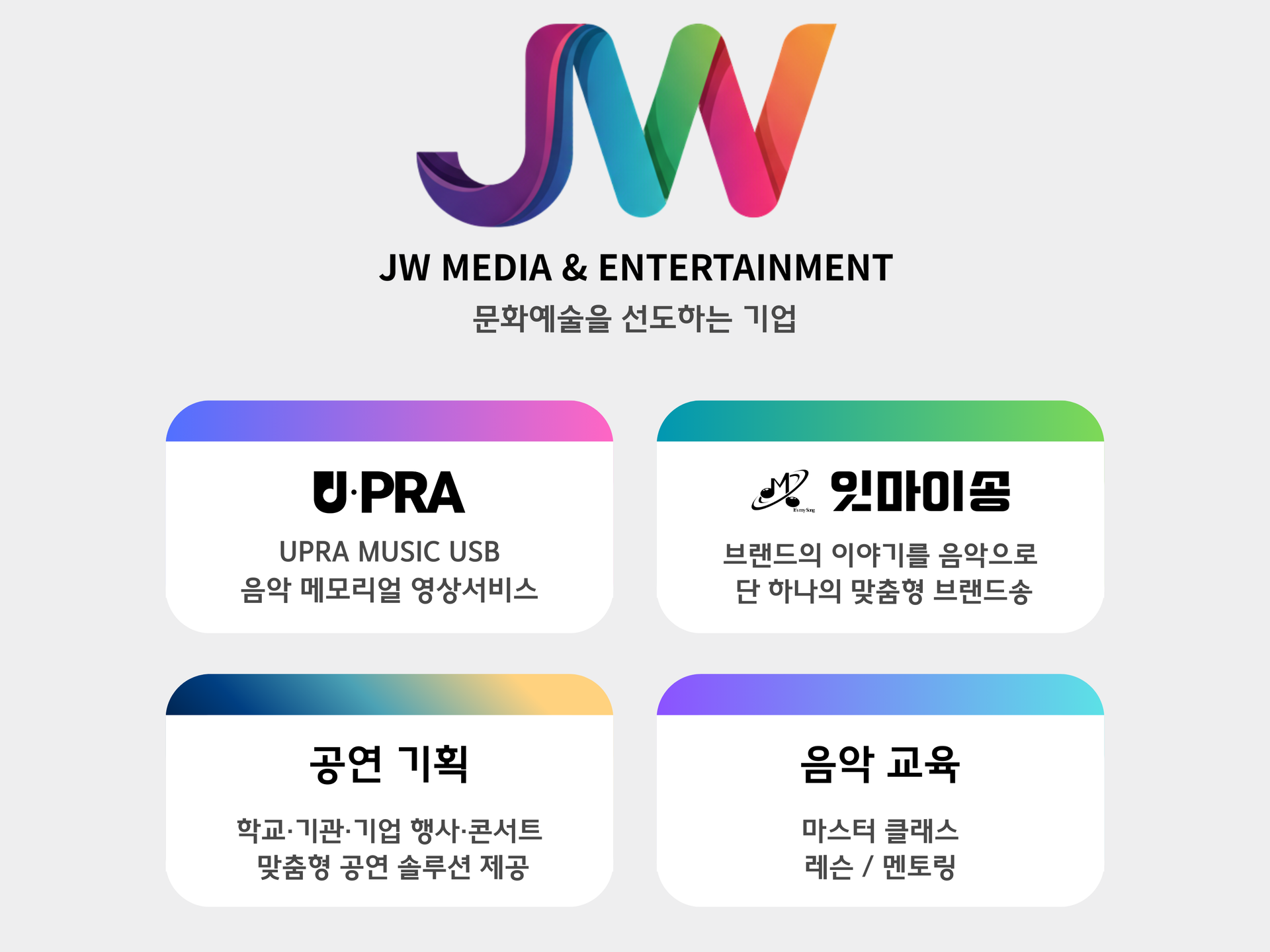 "음악을 통해 배우고, 함께 성장합니다."주식회사 자원(JW Company)은 다양한 교육 프로그램을 통해